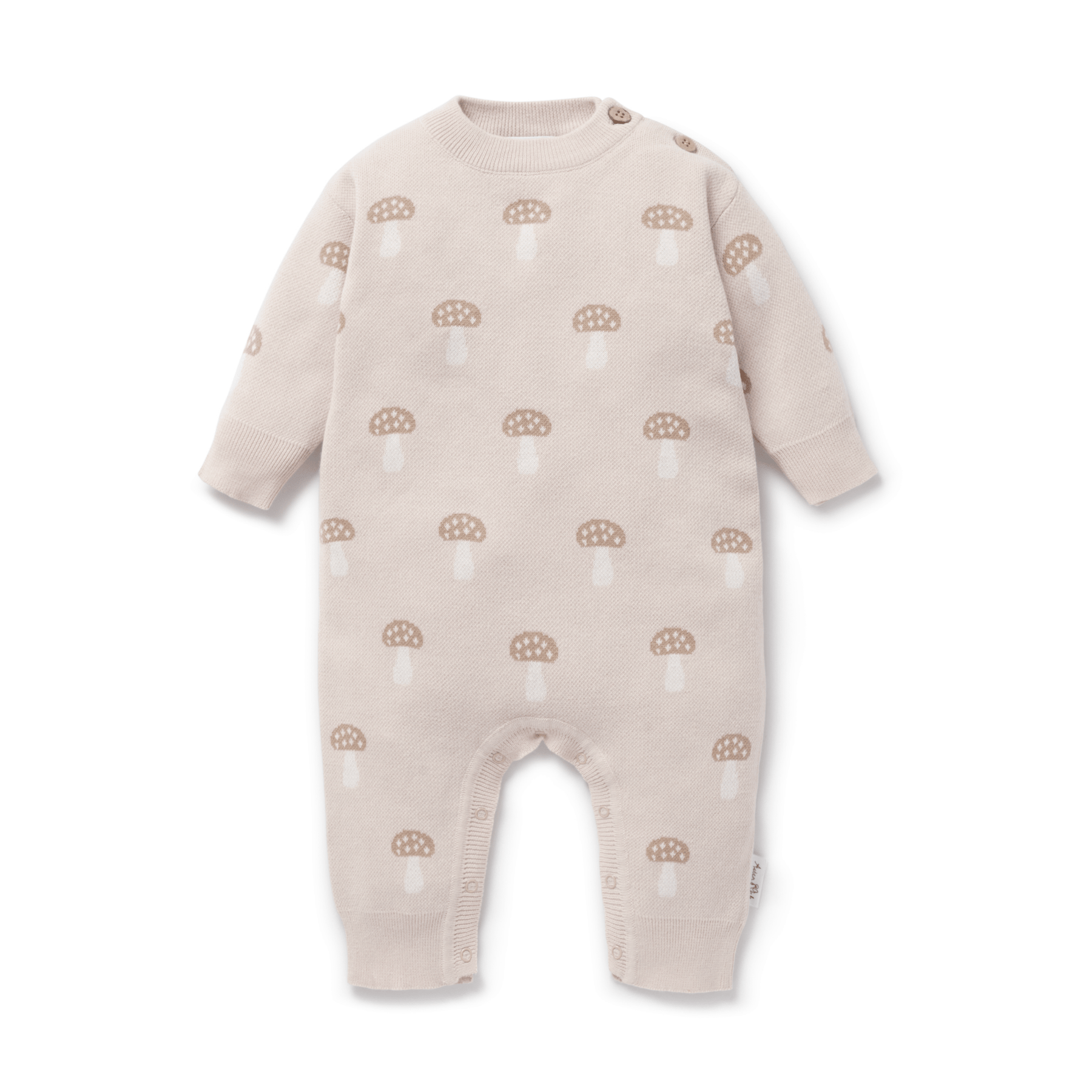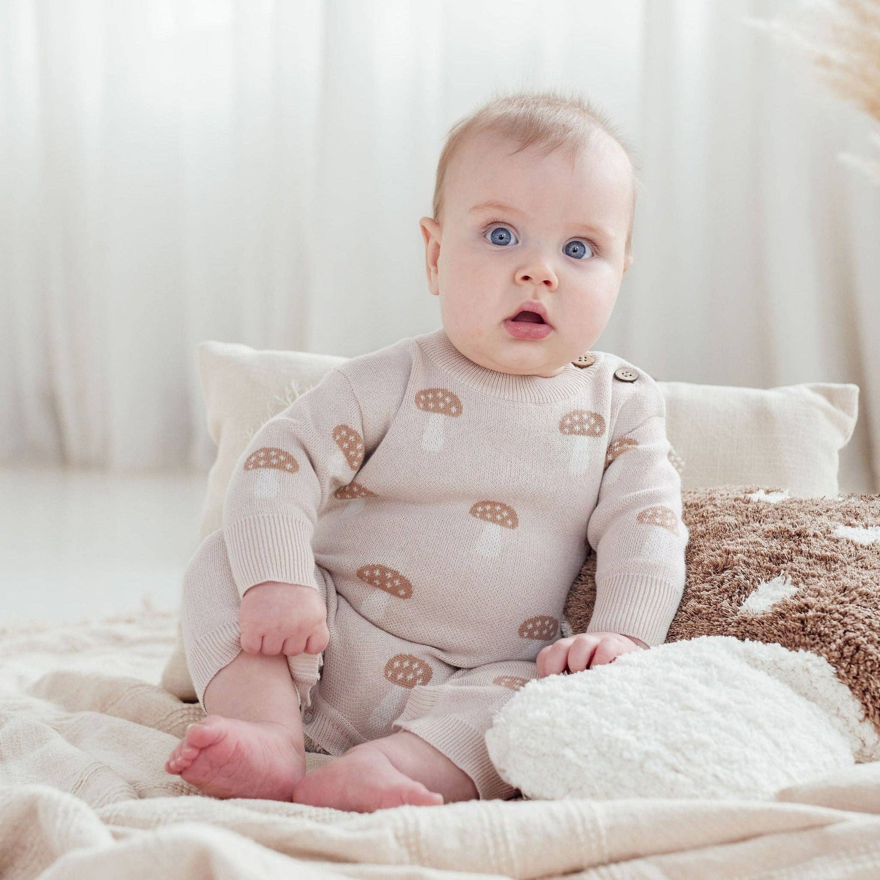 Add a fun, spore-tastic twist to your baby's wardrobe with Aster & Oak's Mushroom Knit Romper! This romper features a playful mushroom print and is made from 100% cotton for ultimate softness. Perfect for your little one's comfort and style!
