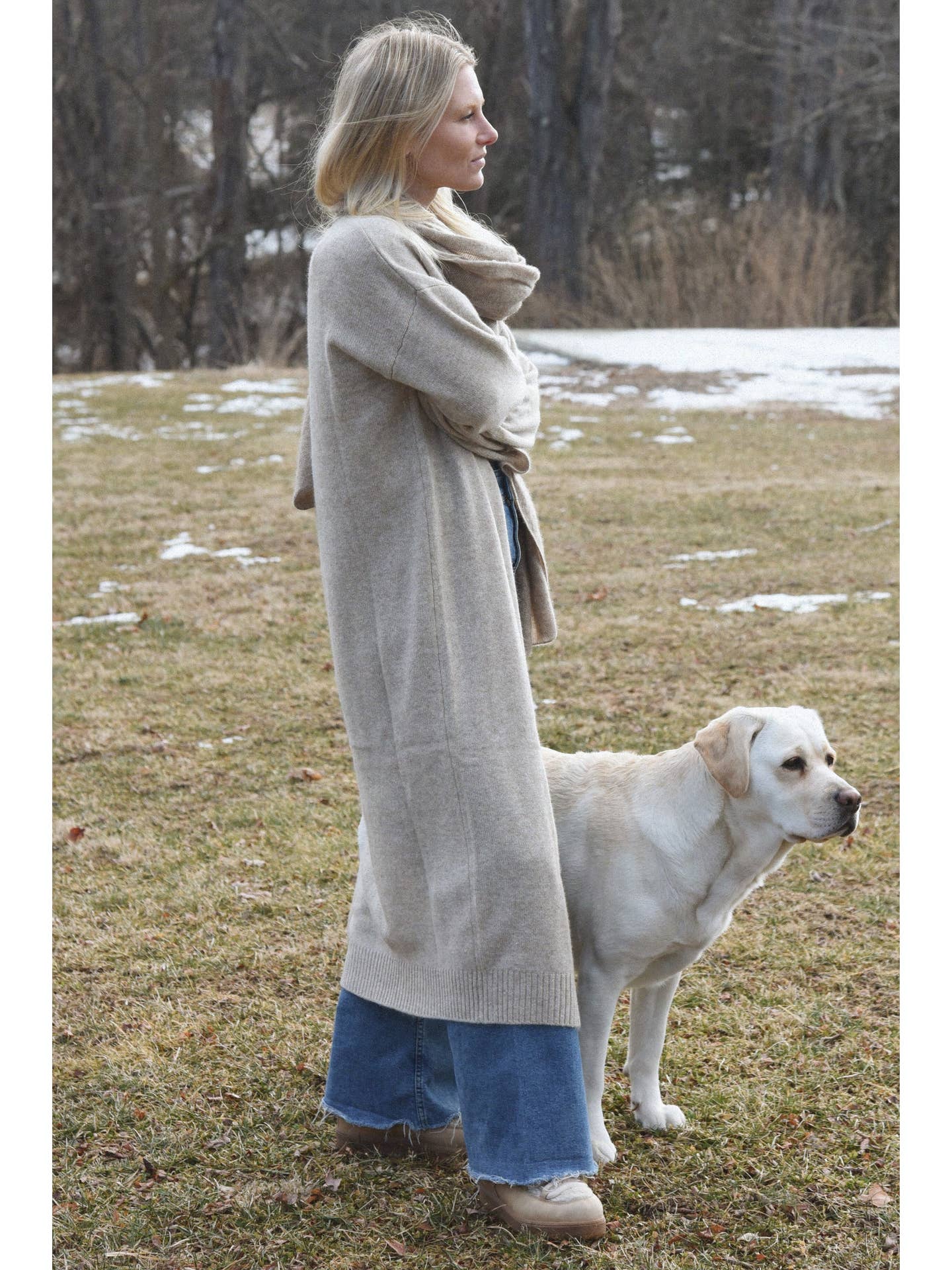 A timeless piece that effortlessly combines comfort and style. Made with the softest thick cashmere promises to offer unmatched warmth, style and versatility for everyday and any occasion. Whether you wear it as a long cardigan or a light cashmere coat, the extra length and laid back elegance will make it your go to look.