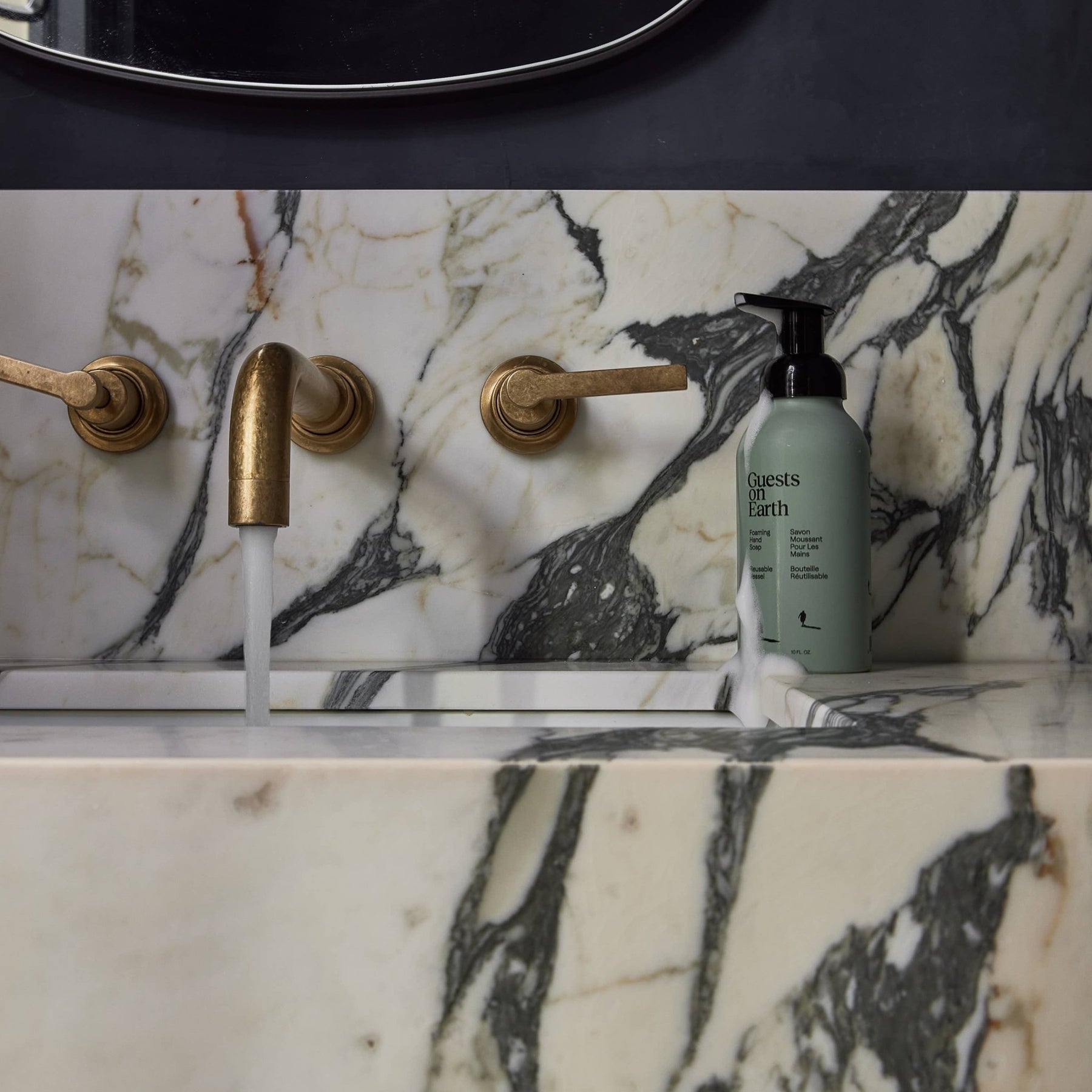 Meet your new, foamy obsession. This luxe Foaming Hand Soap Kit from Guests on Earth features their ultra-nourishing, premium concentrate, with coveted skincare ingredients like Shea Butter, Glycerin, Aloe Vera, Dead Sea Salt and Vitamins C, E and F.