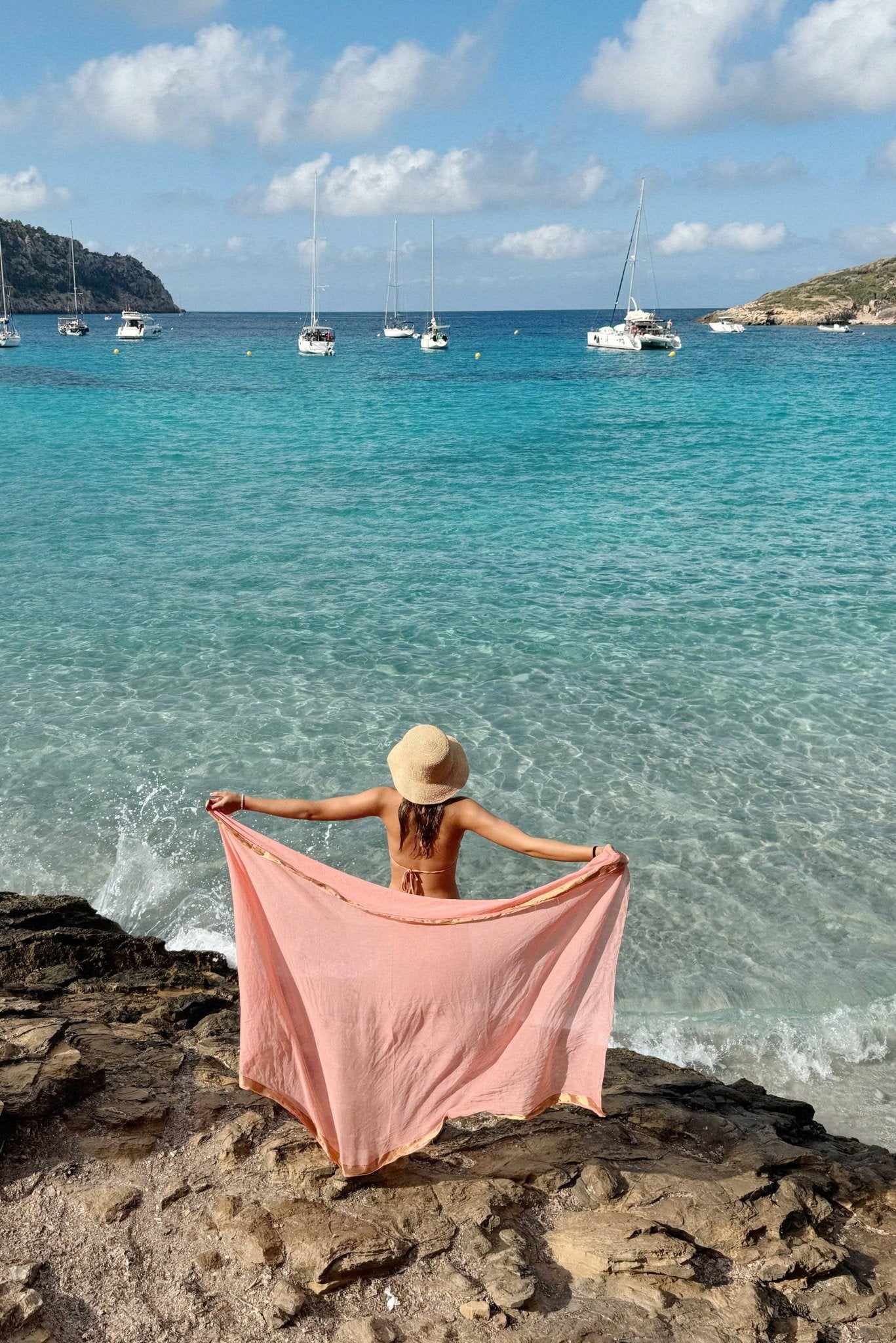 The Pareo from Beachwood is the perfect sunshine sarong for wrapping around your waist, throwing over your shoulders, or draping over absolutely anything to add that extra flair. Ideal for beach days, picnics in the park, or walking down any street in the sunshine! Use it as a wrap skirt and pair it with any of your linens for a head-to-toe, effortless look