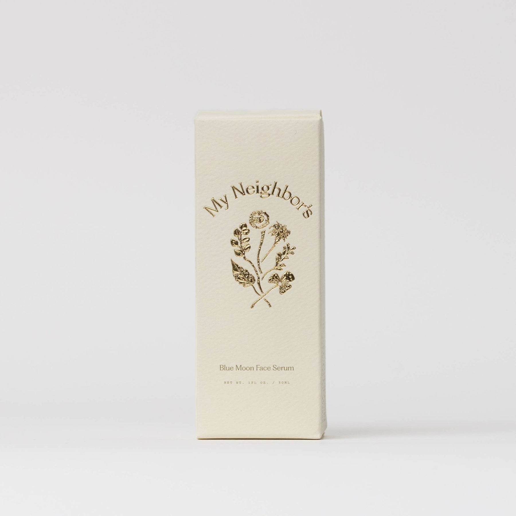Say hello to My Neighbor’s Blue Moon Face Serum! This playful potion combines organic, non-GMO oils like jojoba, rosehip, seabuckthorn, carrot seed, vitamin E, and blue tansy to soak your skin in hydration, soothe redness, and bring calm to stressed, sensitive skin. Slip it under your favorite tallow balm and watch your skin glow with a fresh, radiant glow and extra-loving care.