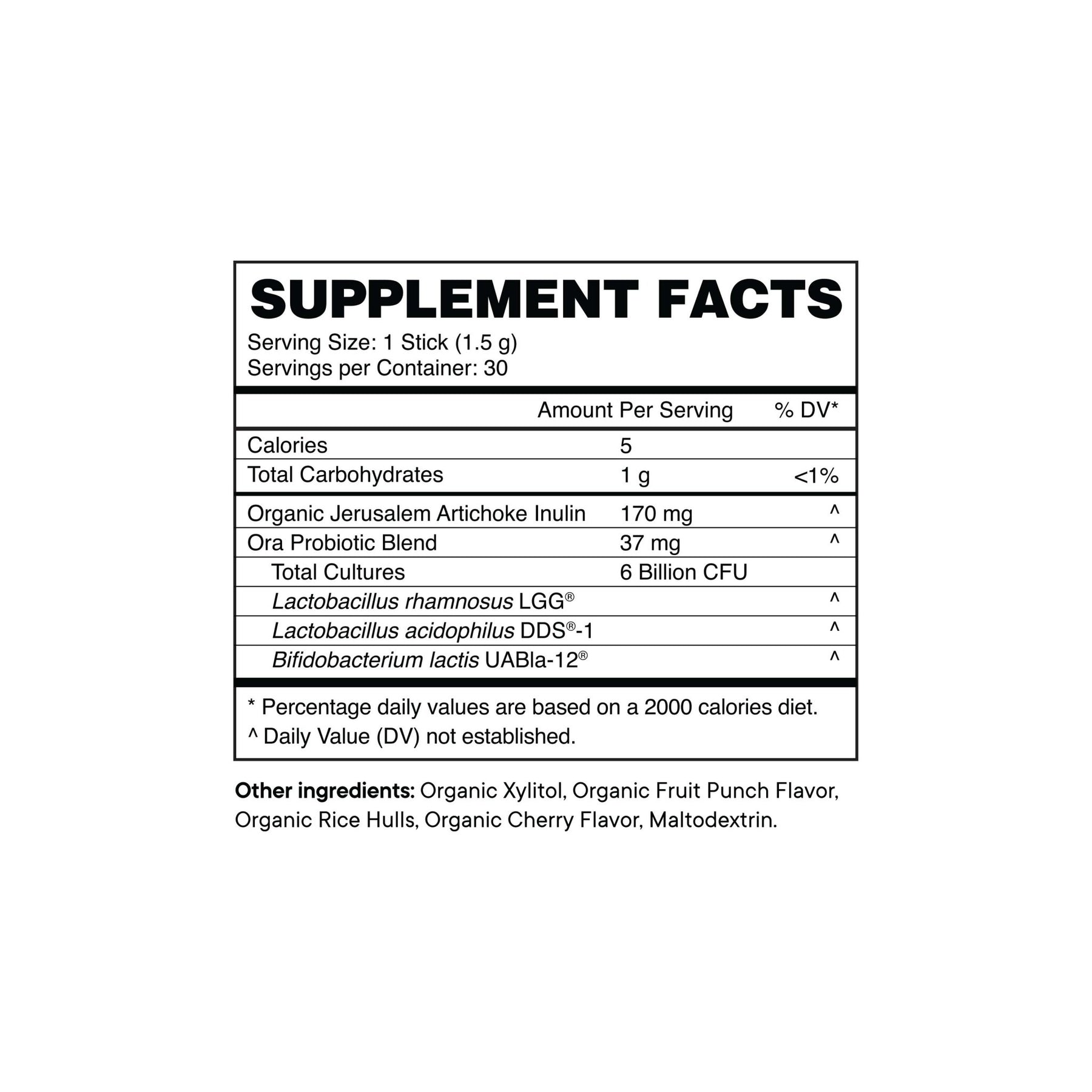 Daily gut and immune support that tastes like fun. Ora Organic's fruit punch probiotic powder combines 7 billion CFU from 3 clinically studied strains with organic prebiotics to support digestion, regularity, and immune defenses — all in a sugar-free powder that melts in your mouth like candy.†