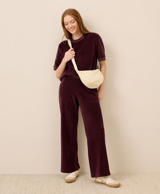 Blurring the lines between ease and luxury, Pact's Pure Velour Collection is an everyday indulgence in 100% organic cotton. Unique to Pact, these clean Velour Wide Leg Pants feel polished, practical, and perfectly put together when styled as a set.