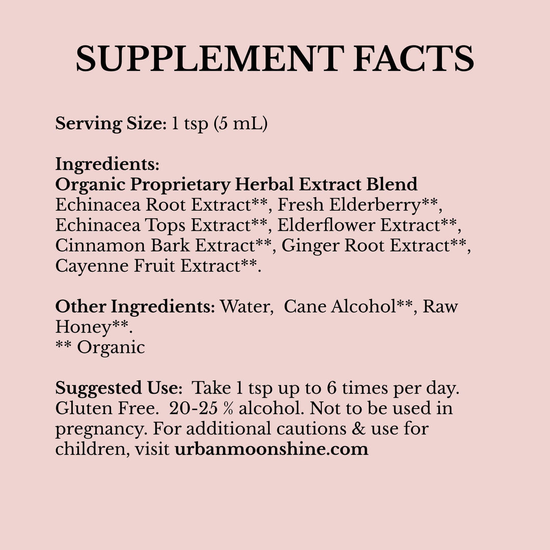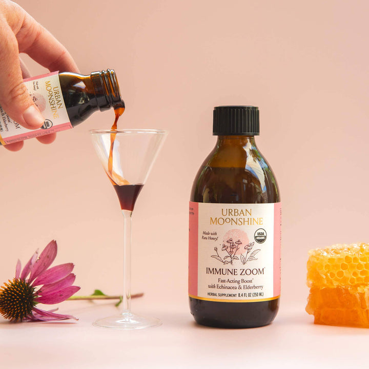 Fast-acting boost with echinacea, elderberry and raw honey. Urban Moonshine's Immune Zoom is a powerhouse formula and an all-time favorite traditionally used to support the immune system and maintain a healthy immune response.†