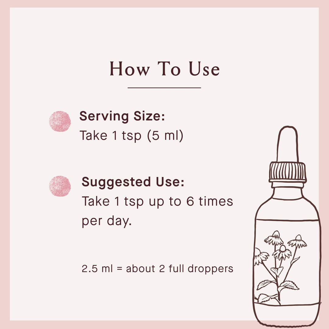 Suggested use: 5 ml (1 tsp) up to 6 times per day.