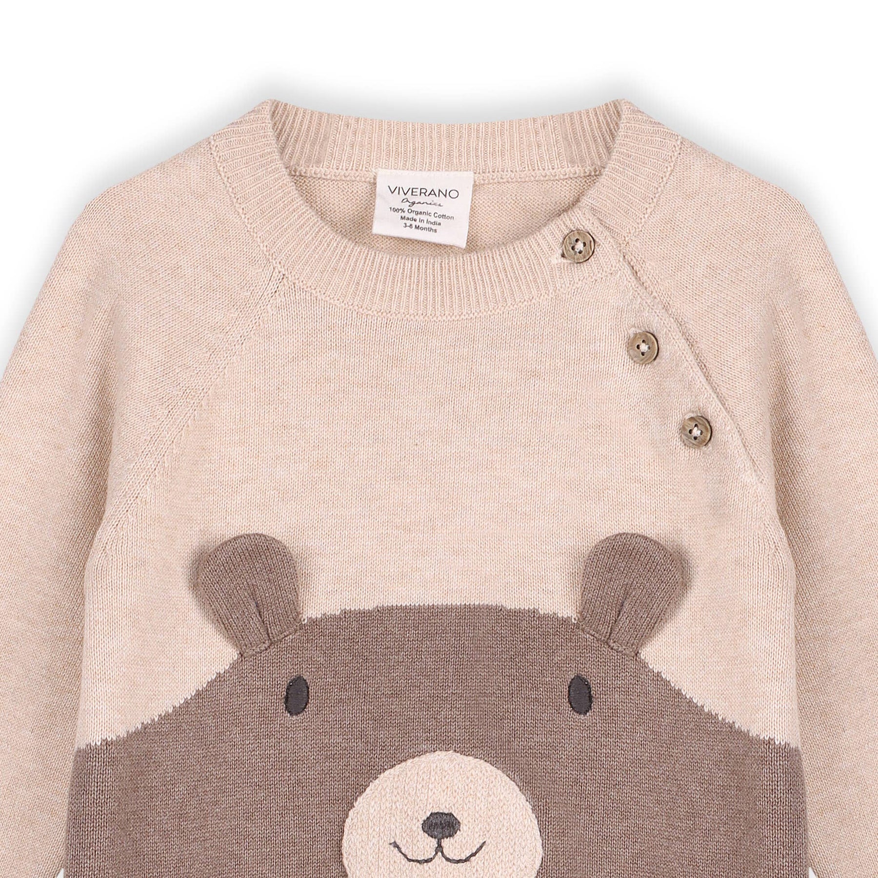 Wrap your little one in pure comfort with Viverano's adorable Cuddly Bear Embroidered Sweater Knit Baby Jumpsuit! Crafted from 100% organic cotton grown and ethically produced in India, this cozy piece keeps your baby snug while supporting sustainable farming practices. The soft, breathable knit fabric gently stretches with every giggle and wiggle, offering a perfect fit that grows with your tiny explorer. Free from harsh chemicals and synthetic dyes, it's wonderfully gentle on delicate skin. Every stitch celebrates both your baby's wellbeing and our planet—because the best cuddles come with a clear conscience.