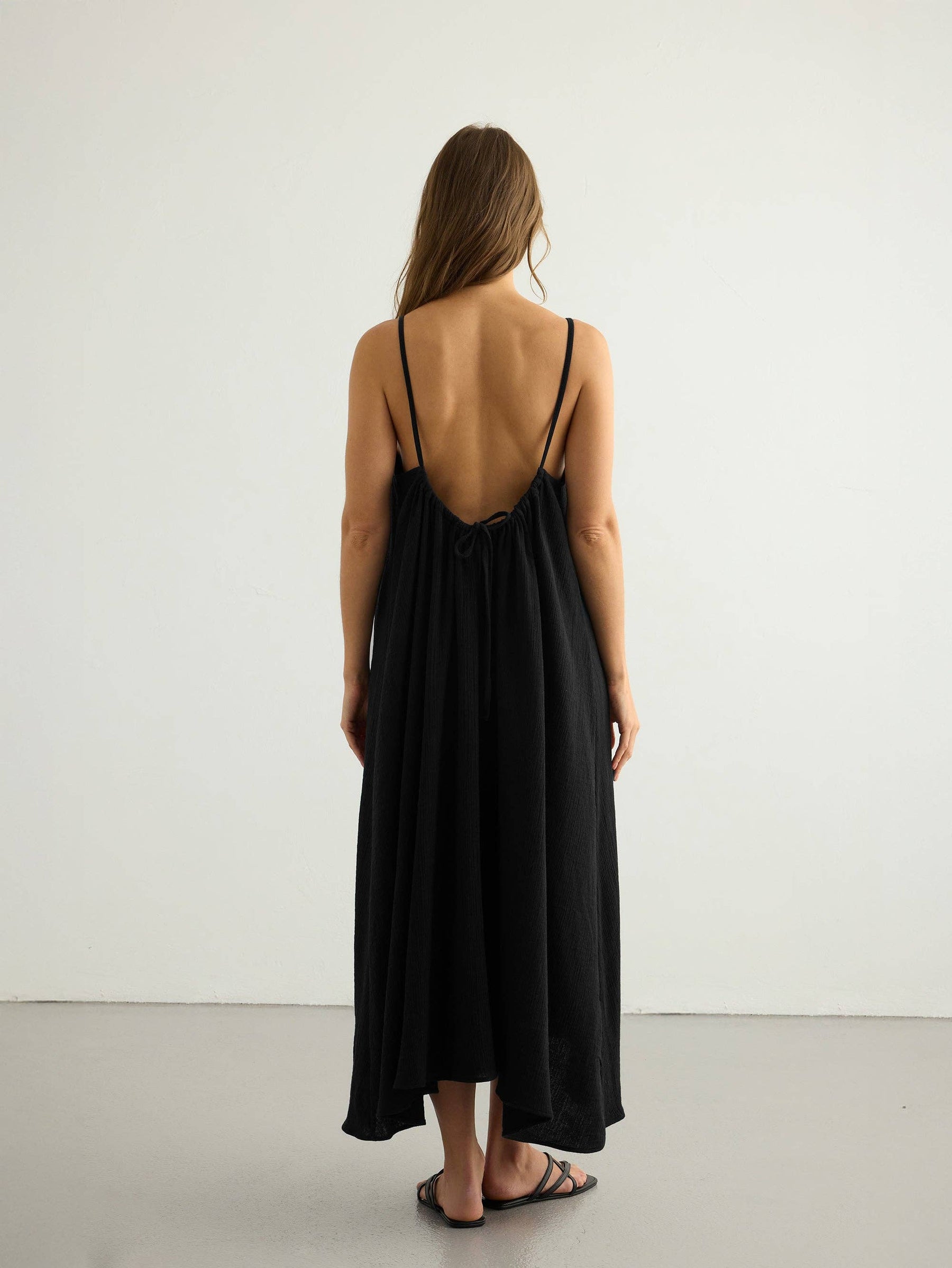 Light, airy, and made to move with you, The Handloom's easy maxi dress brings an effortless kind of elegance to warm days. Crafted from softly textured 100% Turkish cotton, it drapes beautifully with a relaxed, fluid feel. Slender shoulder straps and a soft scoop neckline keep the look simple and feminine, while the low back with adjustable drawstring ties adds a thoughtful detail — and lets you find your perfect fit. Just pull it on and go; it’s the kind of piece that works as easily for sunny afternoons as it does for long, lingering summer evenings.