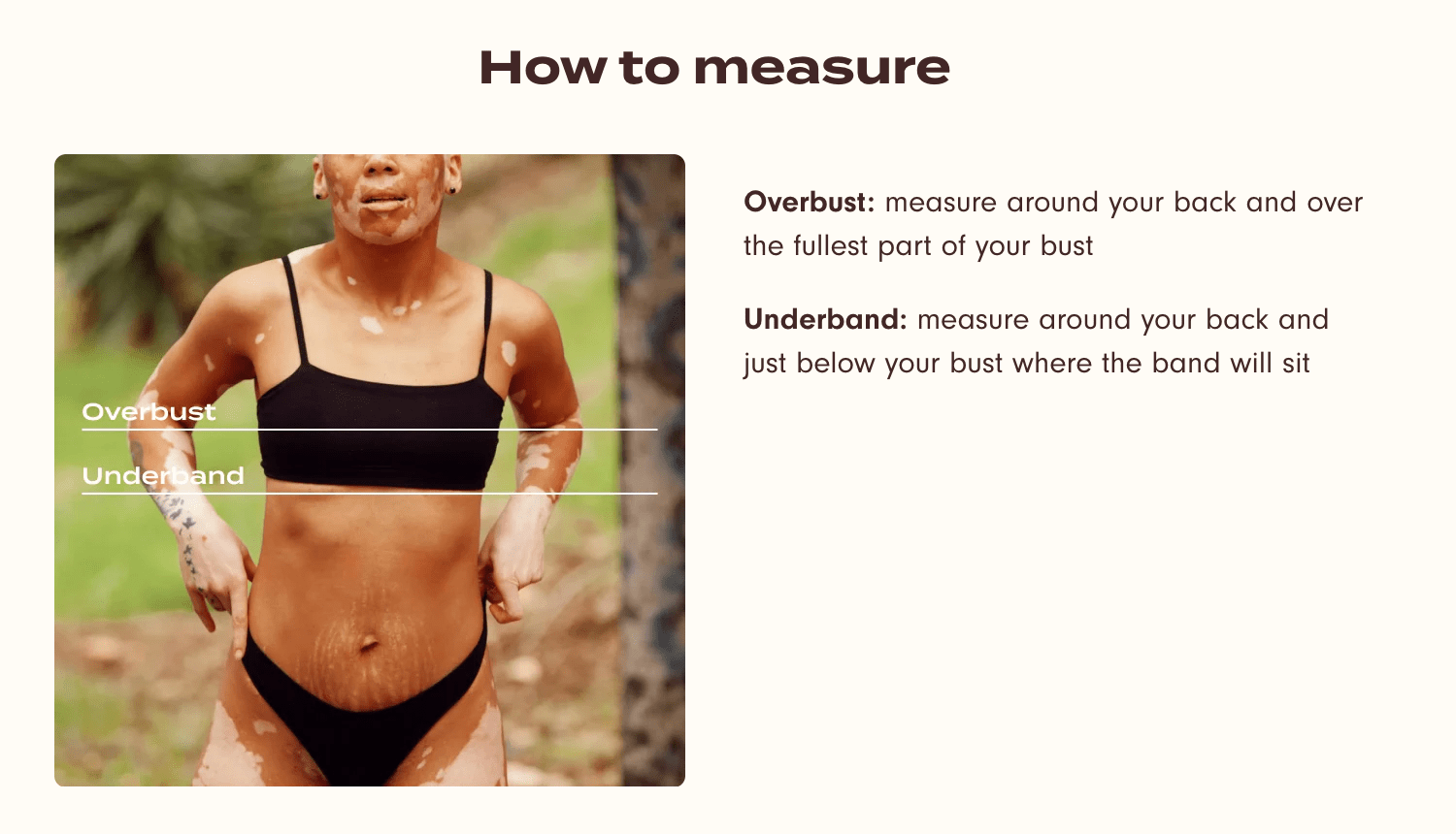 • Fit note: Go by your overbust and underband measurements for the best fit in this style. Between sizes? Size up.